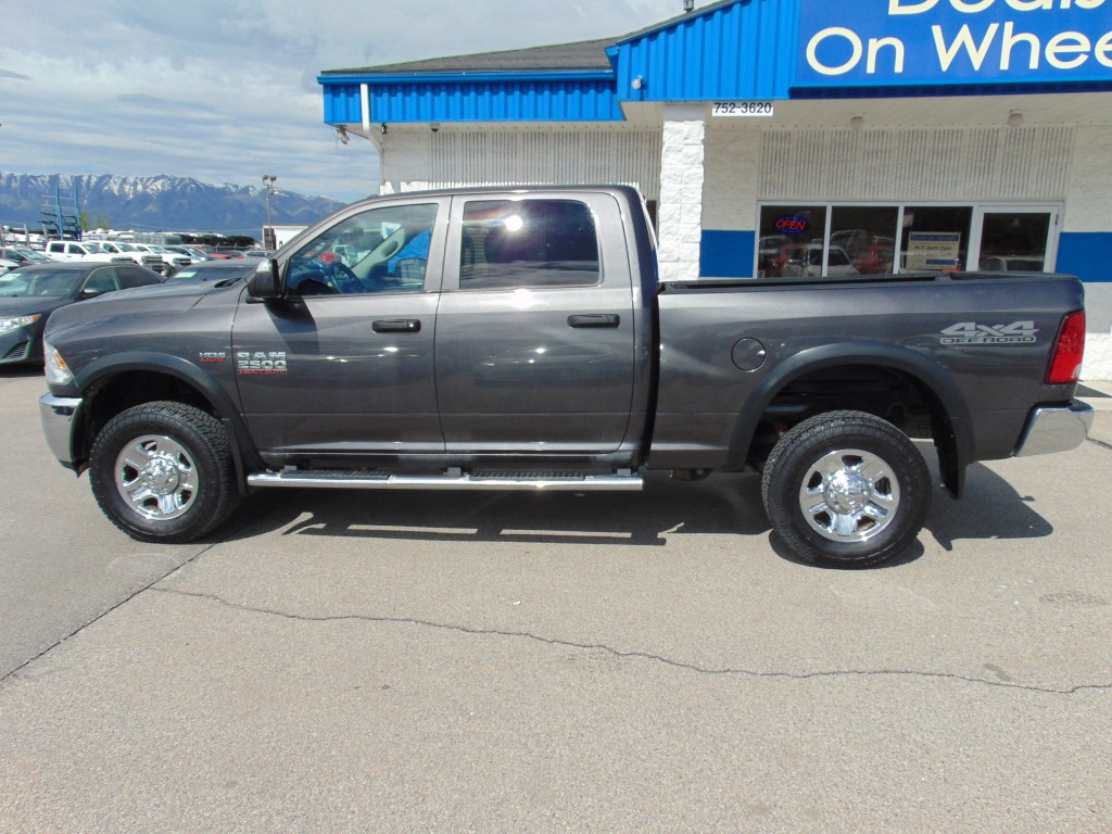 2018 RAM 2500 TRADESMAN 4X4, CREW CAB, SHORT BED, WITH THE 6.4L V8 HEMI MOTOR, AUTOMATIC TRANSMISSION, 373 AXLE WITH ANTI-SPIN REAR DIFF, ELECTRIC SHIFT 4X4, OFF ROAD PACKAGE, AND 107,225 MILES. THIS RAM COMES EQUIPPED WITH BLACK CLOTH INTERIOR, 6 PASSENGER SEATING, POWER WINDOWS, LOCKS, AND MIRRORS, TILT, CRUISE, A/C, AM/FM/XM STEREO, BLUETOOTH, USB/AUX. PORTS, STEERING WHEEL AUDIO CONTROLS, 5.0 INCH TOUCHSCREEN, REVERSE CAMERA, REVERSE SENSORS, FACTORY TRAILER BRAKE CONTROLLER, GOOSENECK BALL TOW PACKAGE, BUMPER PULL TOW PACKAGE, SPRAY-IN BEDLINER, FIXED RUNNING BOARDS, GOOD TIRES, AND MUCH MORE!! THIS RAM IS IN EXCELLENT CONDITION INSIDE AND OUT! IT IS ON A CLEAN TITLE AND ACTUAL MILES.