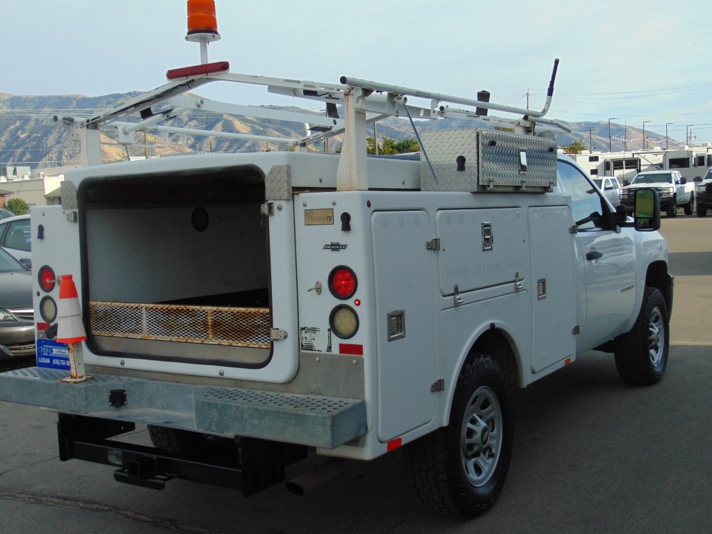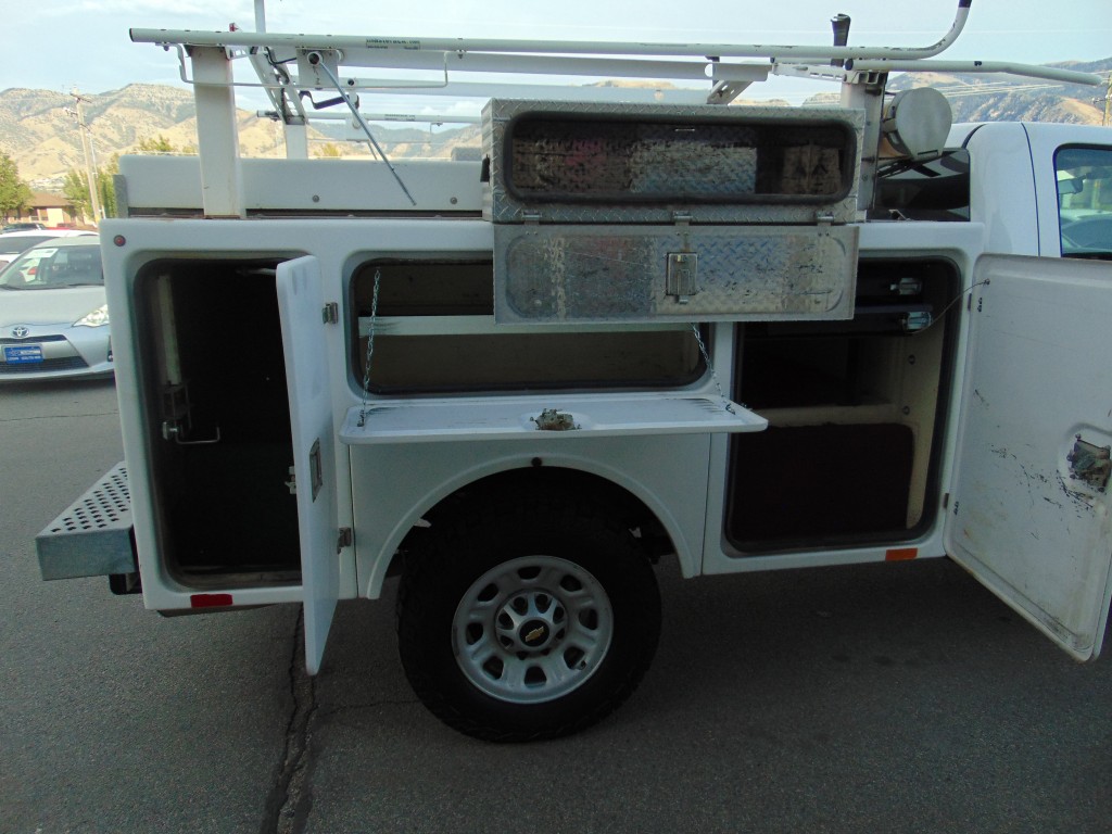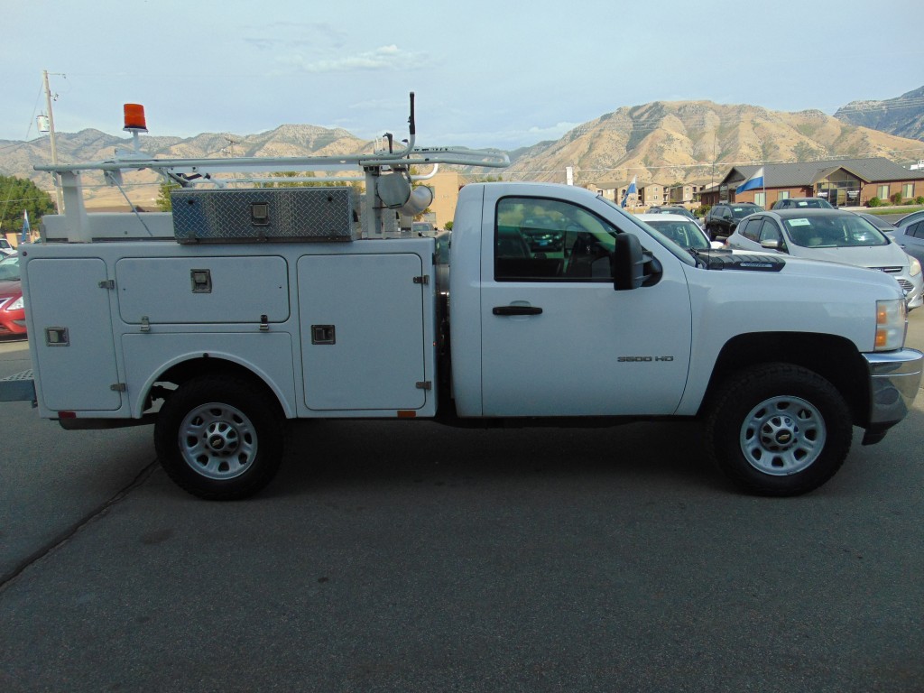 2013 CHEVY 3500HD WORK TRUCK 4X4, REGULAR CAB, SERVICE BED, AUTOMATIC 6L-90 TRANSMISSION, 3.73 AXLE RATIO WITH LIMITED SLIP, 133.6 INCH WHEELBASE, 10,700 POUND GVW RATING, 185,536 MILES, LIGHT GRAY VINYL INTERIOR, 2 PASSENGERS SEATING, VINYL FLOOR, **MANUAL WINDOWS, LOCKS, AND MIRRORS,** TILT CRUISE, A/C, AM/FM STEREO, STROBE LIGHT, FIBERGLASS SERVICE BED W/BINS, LADDER RACKS, MANUAL SHIFT 4X4, HEAVY DUTY TRANSMISSION COOLER, TOW PACKAGE, FACTORY TRAILER BRAKE CONTROLLER, GOOD TIRES, AND MUCH MORE!! THIS CHEVY IS IN VERY GOOD CONDITION INSIDE AND OUT!! IT IS ON A CLEAN TITLE AND ACTUAL MILES.