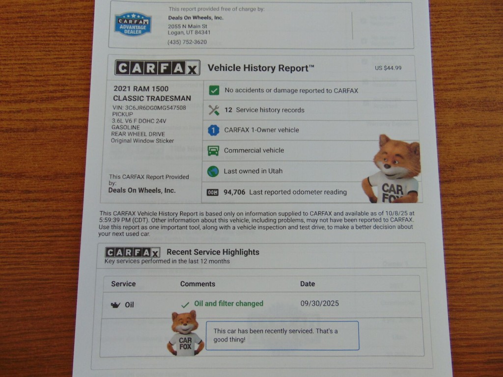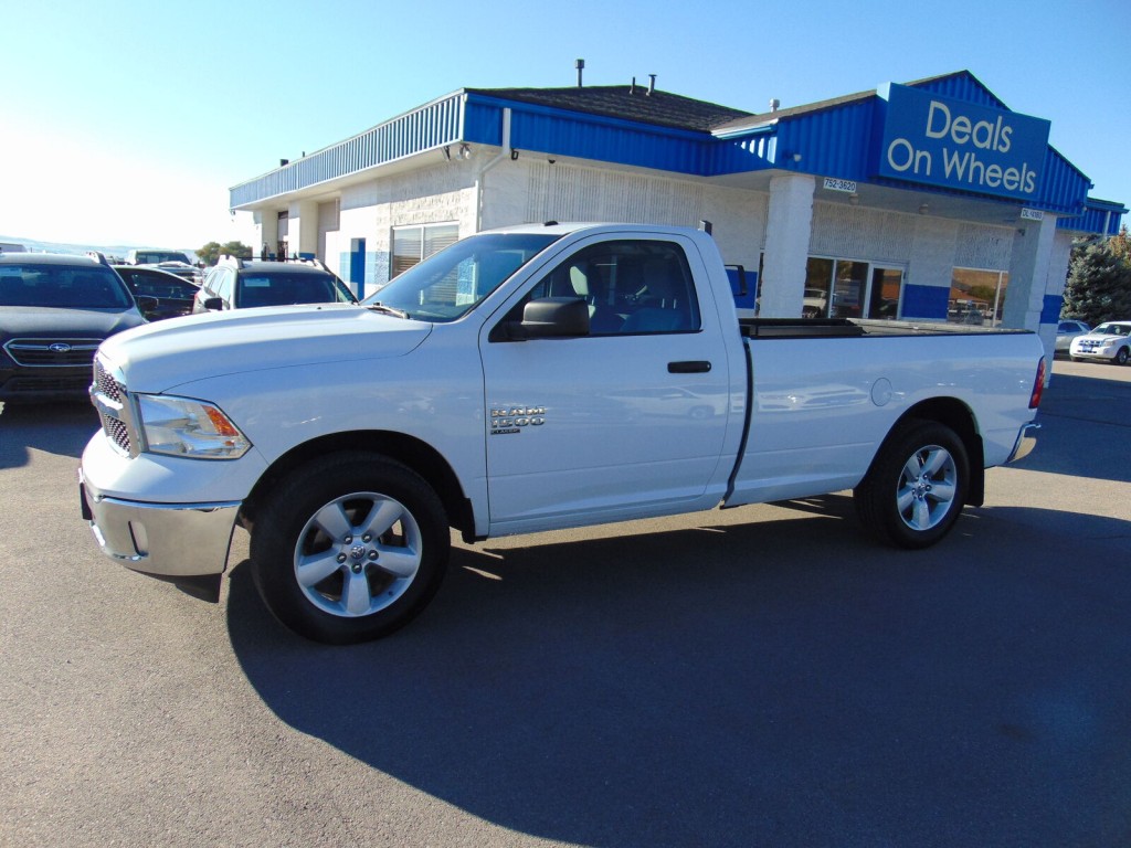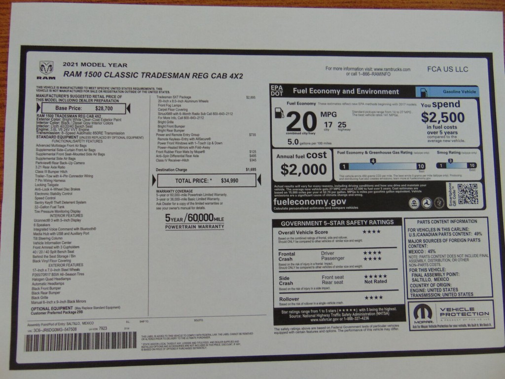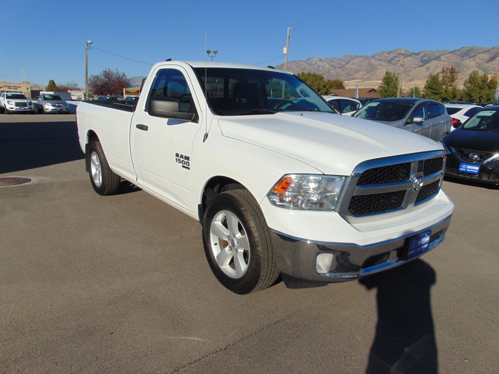 2021 RAM 1500, TRADESMAN SXT PACKAGE, REGULAR CAB, 2 WHEEL DRIVE, 3.6L V6, 8 SPEED AUTOMATIC, 94,073 MILES, MEDIUM GRAY CLOTH INTERIOR, 3 PASSENGER SEATING, 32 GALLON FUEL TANK, XM RADIO, POWER WINDOWS, LOCKS, AND MIRRORS, TILT, CRUISE, 3.21 AXLE RATIO WITH ANTI SPIN REAR DIFF, USB/AUX PORT, BACKUP CAMERA, KEYLESS ENTRY, CARPET, BLUETOOTH, TRAILER BRAKE CONTROLLER, 20 INCH FACTORY ALLOY WHEELS, SPRAY IN BEDLINER, TOW PACKAGE. ONE OWNER WITH NO ACCIDENTS. CLEAN TITLE AND ACTUAL MILES. THIS RAM IS IN EXCELLENT CONDITION!