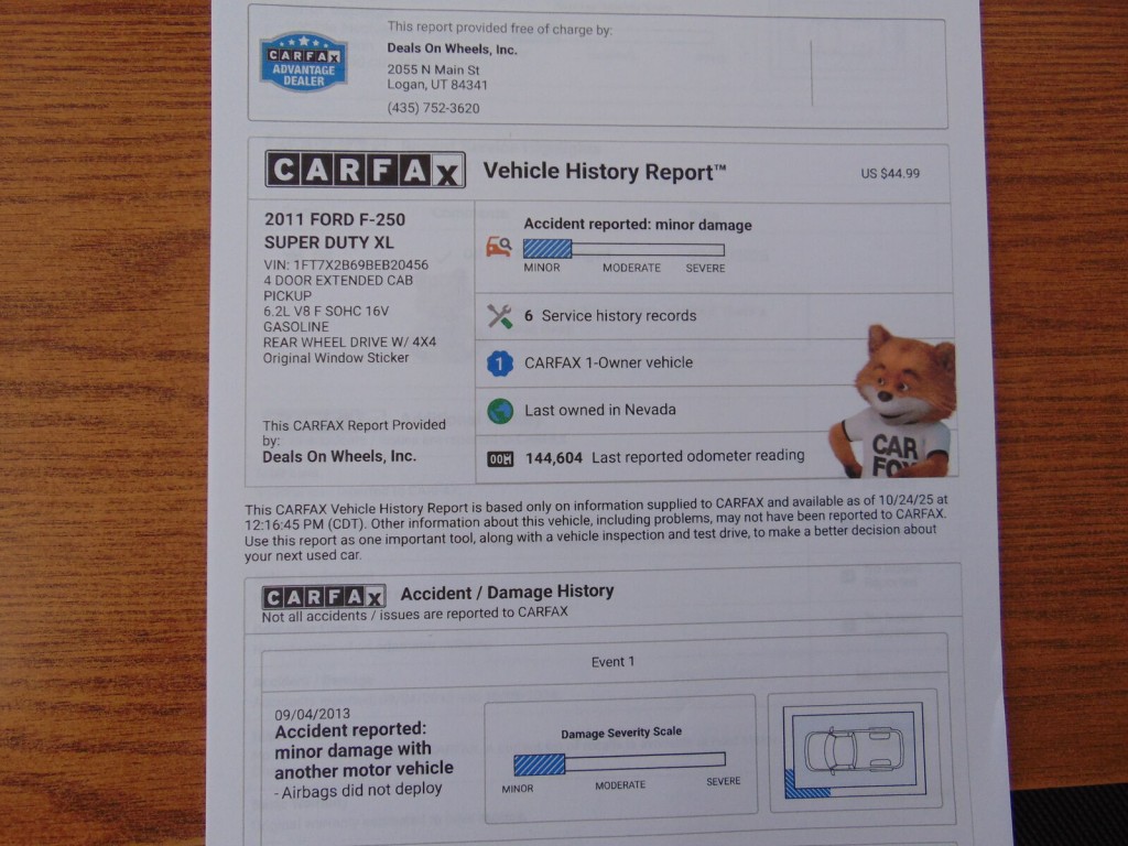 2011 FORD F-250SD, XL, EXTENDED CAB, LONG BED, 6.2L V8, AUTOMATIC, 144,587 MILES, MEDIUM GRAY CLOTH INTERIOR, 6 PASSENGER SEATING, 3.73 AXLE RATIO WITH ELECTRIC LOCKING REAR DIFF, ELECTRIC SHIFT 4X4, 9600 POUND GVWR, POWER WINDOWS, LOCKS, AND MIRRORS, TILT, CRUISE, MICRO SOFTSYNC, USB/AUX PORT, CD PLAYER WITH STEERING WHEEL AUDIO CONTROLS, BACK UP SENSORS, FIBERGLASS BED COVER, TOW PACKAGE, SPRAY IN BEDLINER. FORMER GOVERNMENT VEHICLE FROM LAS VEGAS. CLEAN TITLE AND ACTUAL MILES. THIS FORD IS IN EXCELLENT CONDITION!