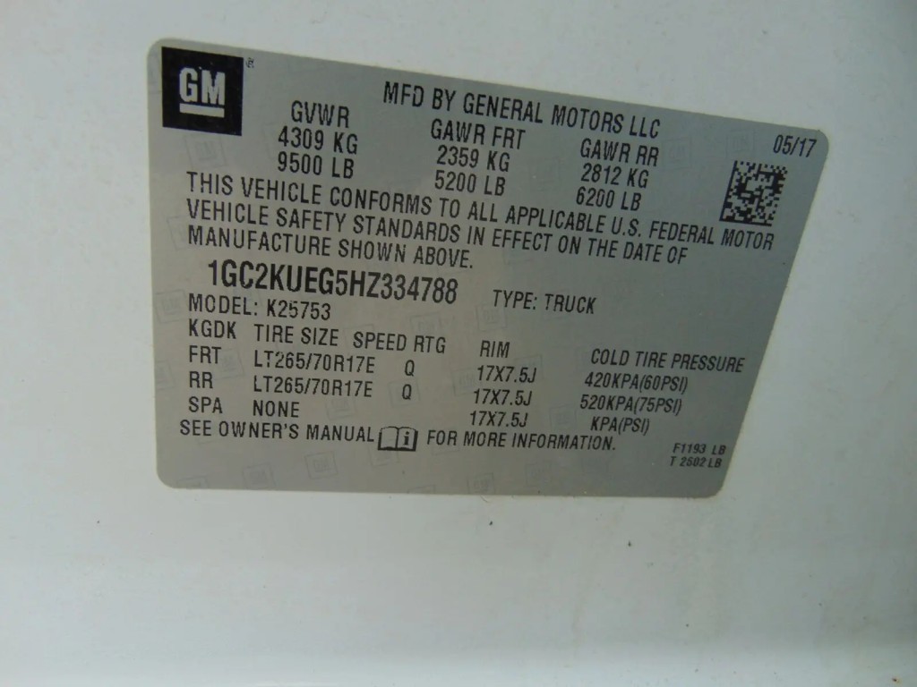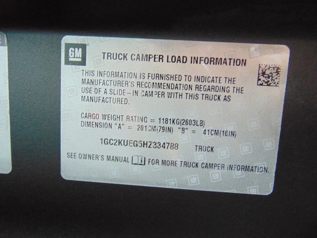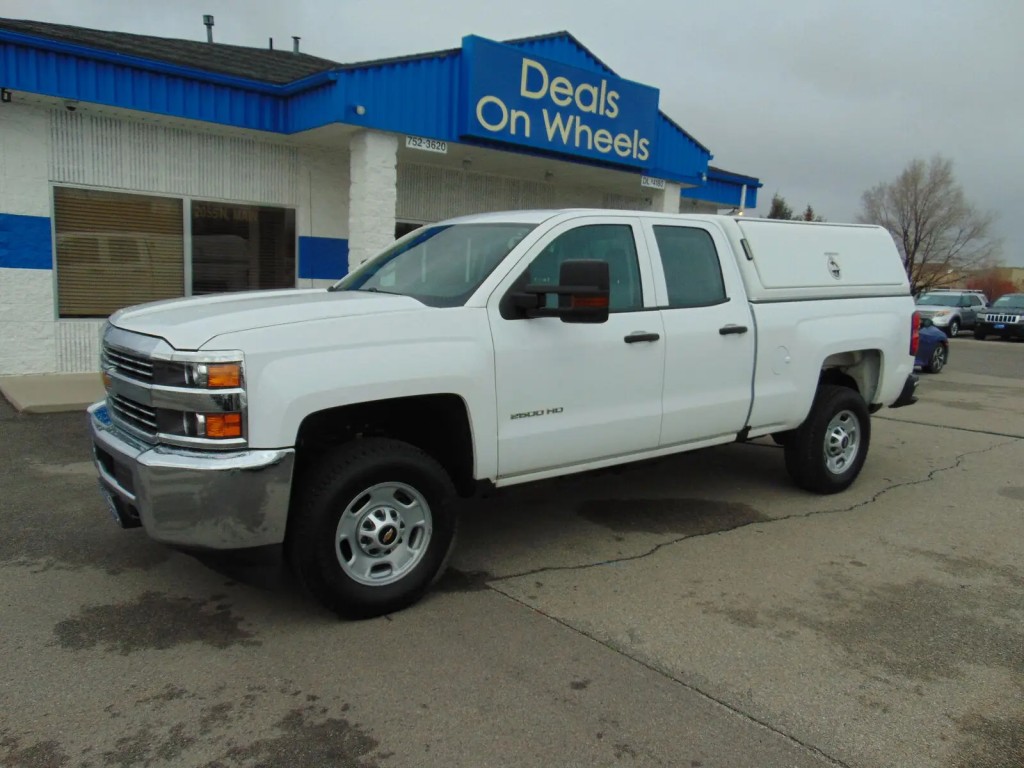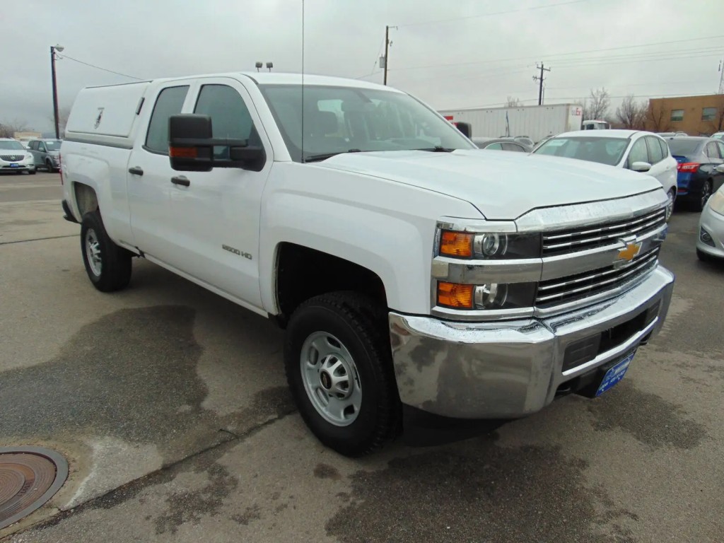 2017 CHEVY 2500HD, WORK TRUCK, EXTENDED CAB, SHORT BED, 6.0L V8, 144.2 INCH WHEELBASE, FIBERGLASS WORK SHELL WITH ROLLOUT, Z71 OFF ROAD PACKAGE, MANUAL SHIFT 4X4, 6L-90 AUTOMATIC, 4.10 AXLE RATIO WITH LIMITED SLIP, 9500 POUND GVW RATING, 111,794 MILES AND 5234 ENGINE HOURS, MEDIUM GRAY VINYL INTERIOR, 6 PASSENGER SEATING, POWER WINDOWS, LOCKS, AND MIRRORS, TILT, CRUISE, BACKUP CAMERA, BLUETOOTH, USB/AUX PORT, RUBBER FLOOR MAT, FACTORY TRAILERBRAKE CONTROLLER, TOW PACKAGE, GOOD TIRES. CLEAN TITLE AND ACTUAL MILES. THIS CHEVY IS IN EXCELLENT CONDITION!