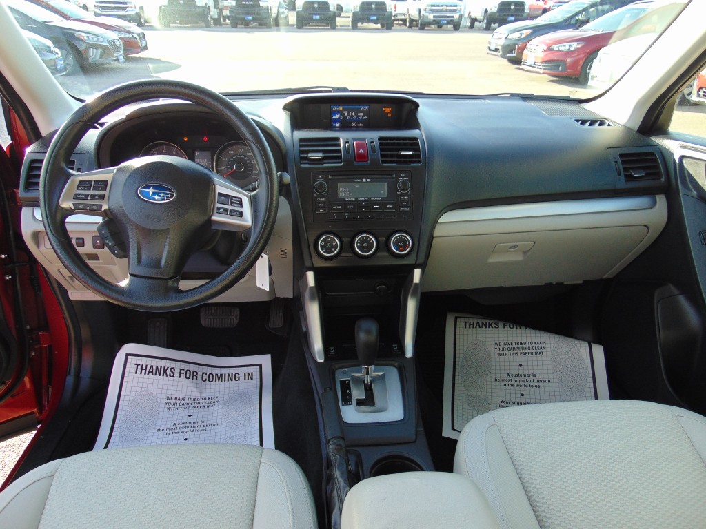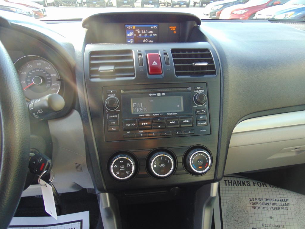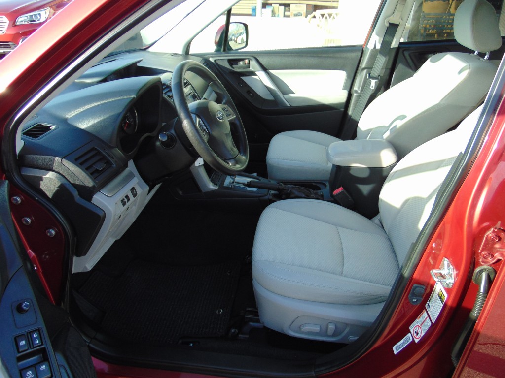 -CLEAN CARFAX AND NO ACCIDENTS REPORTED ON THIS 2015 SUBARU FORESTER PREMIUM ALL-WEATHER/EYE SIGHT AWD WITH THE 2.5L 4 CYLINDER MOTOR, AUTOMATIC TRANSMISSION, AND ONLY 94,259 MILES. THIS FORESTER COMES EQUIPPED WITH GRAY CLOTH INTERIOR, DRIVER POWER SEAT, 5 PASSENGER SEATING, POWER WINDOWS, LOCKS, AND MIRRORS, TILT, CRUISE, A/C, AM/FM CD PLAYER, BLUETOOTH, USB/AUX. PORT, STEERING WHEEL AUDIO CONTROLS, PANORAMIC POWER SUNROOF, REVERSE CAMERA, LANE ASSIST, COLLISION AVOIDANCE, TOW PACKAGE, ALLOY WHEELS, NEW TIRES, AND MUCH MORE!! THIS FORESTER IS IN EXCELLENT CONDITION INSIDE AND OUT! IT IS ON A CLEAN TITLE AND ACTUAL MILES OUT OF NEVADA.