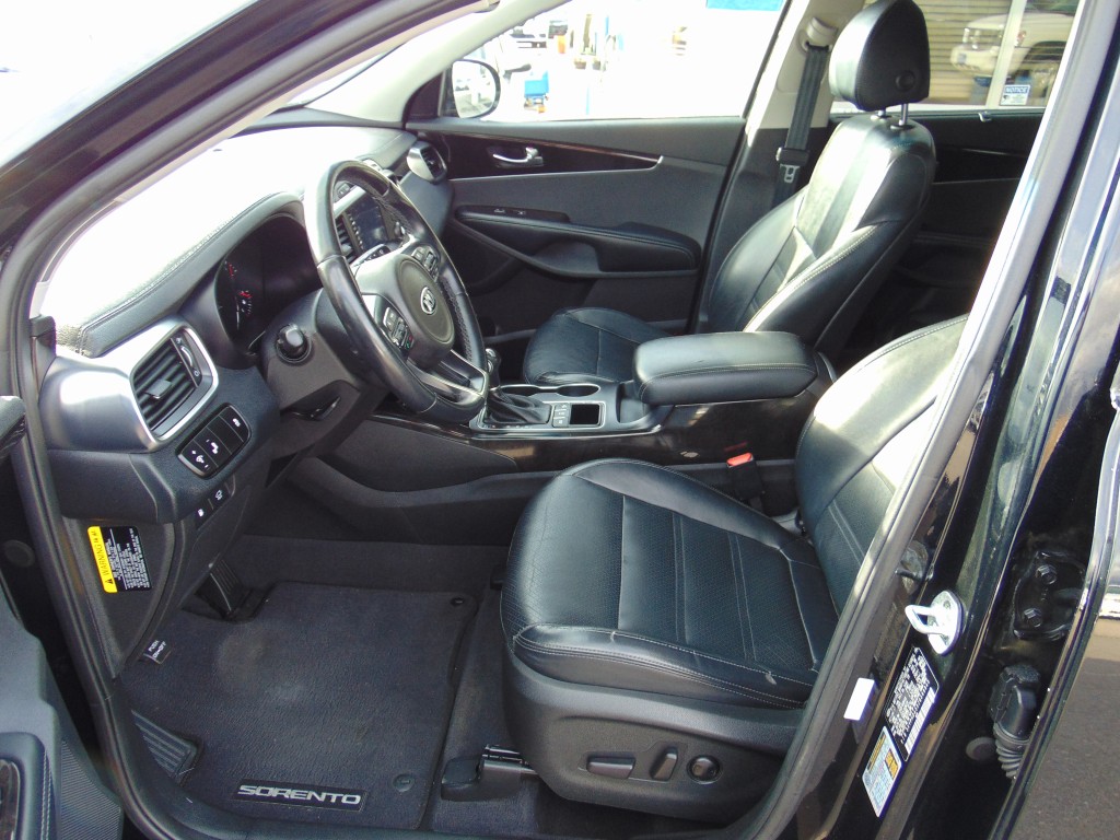 2018 KIA SORENTO EX V6 AWD WITH THE 3.3L V6 MOTOR, AUTOMATIC TRANSMISSION, AND 108,432 MILES. THIS SORENTO COMES EQUIPPED WITH BLACK LEATHER INTERIOR, DUAL FRONT POWER/HEATED SEATS, 7 PASSENGER SEATING, POWER WINDOWS, LOCKS, AND MIRRORS, TILT, CRUISE, A/C, DUAL ZONE CLIMATE CONTROLS, AM/FM/XM CD PLAYER, BLUETOOTH, APPLE CARPLAY, ANDROID AUTO, USB PORT, STEERING WHEEL AUDIO CONTROLS, REVERSE CAMERA, BLIND SPOT MONITOR, UNIVERSAL GARAGE DOOR OPENER, REAR POWER LIFTGATE, ALLOY WHEELS, GOOD TIRES, AND MUCH MORE!! THIS SORENTO IS IN EXCELLENT CONDITION INSIDE AND OUT! IT IS ON A CLEAN TITLE AND ACTUAL MILES.