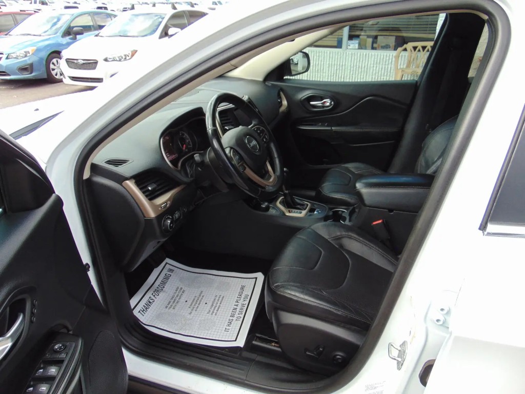 2014 JEEP CHEROKEE, LIMITED, 3.2L V6, 4X4, 94,552 MILES, BLACK LEATHER INTERIOR, 5 PASSENGER SEATING, DRIVERS SIDE POWER SEAT WITH LUMBAR SUPPORT, FORWARD COLLISION ALERT, ADAPTIVE CRUISE, LANE DEPARTURE WARNING, BACKUP ASSIST, PARK ASSIST, NAVIGATION, 8 INCH TOUCH SCREEN, XM RADIO, HEATED AND COOLED FRONT SEATS, DUAL CLIMATE CONTROL, AUTO DIMMING REAR VIEW MIRROR, POWER LIFTGATE, DRIVERS SIDE MEMORY SEAT, BLUETOOTH, PUSH TO START WITH REMOTE START, FOG LIGHTS, NEW TIRES, FACTORY ALLOY WHEELS, LUGGAGE RACK, TOW PACKAGE. CLEAN TITLE AND ACTUAL MILES. THIS JEEP IS IN EXCELLENT CONDITION!