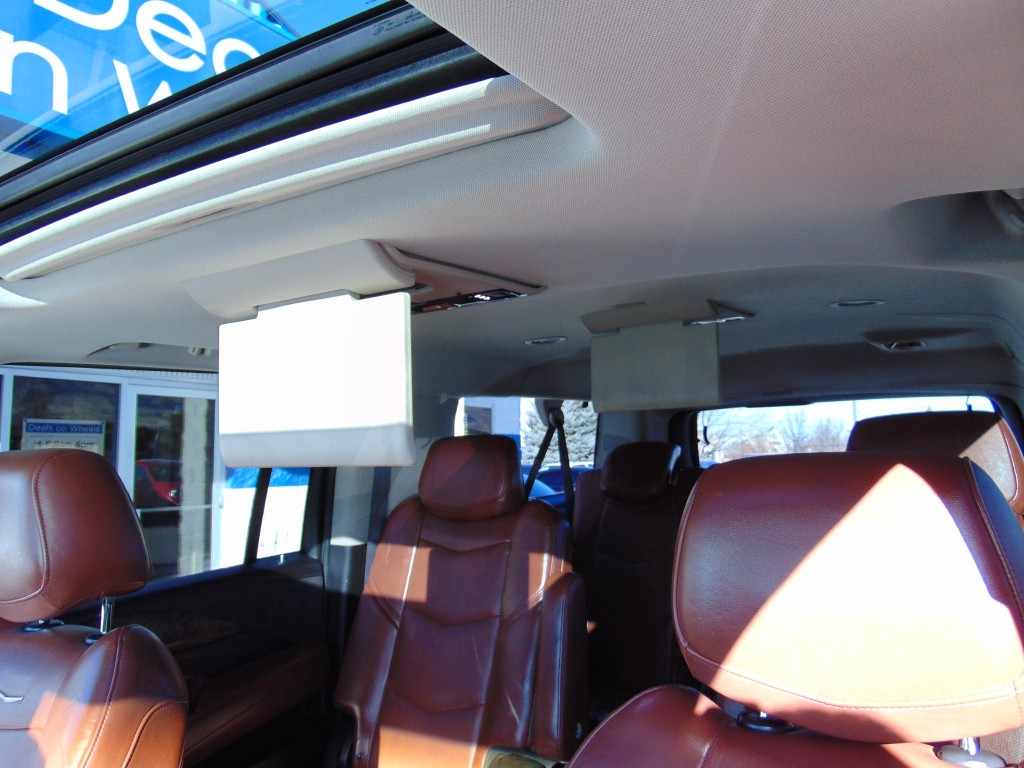 2015 CADILLAC ESCALADE ESV PREMIUM AWD WITH THE 6.2L V8 MOTOR, AUTOMATIC TRANSMISSION, AND 116,802 MILES. THIS CADILLAC COMES EQUIPPED WITH BROWN/BLACK LEATHER INTERIOR, DUAL FRONT POWER HEATED/COOLED SEATS, DRIVER MEMORY SEAT, 7 PASSENGER SEATING, MIDDLE ROW BUCKET HEATED SEATS, REAR POWER FOLDING SEATS, POWER WINDOWS, LOCKS, AND MIRRORS, TILT, ADAPTIVE CRUISE, A/C, TRI-ZONE CLIMATE CONTROLS, AM/FM/XM BOSE STEREO, BLUETOOTH, USB PORTS, STEERING WHEEL AUDIO CONTROLS, DUAL SCREEN DVD SYSTEM, NAVIGATION, REVERSE CAMERA, BLIND SPOT MONITOR, LANE ASSIST, COLLISION AVOIDANCE, POWER SUNROOF, UNIVERSAL GARAGE DOOR OPENER, REAR POWER LIFTGATE, TOW PACKAGE, POWER FOLDING RUNNING BOARDS, ALLOY WHEELS, GOOD TIRES, FOG LIGHTS, AND MUCH MORE!! THIS ESCALADE IS IN EXCELLENT CONDITION INSIDE AND OUT! IT IS ON A CLEAN TITLE AND ACTUAL MILES.